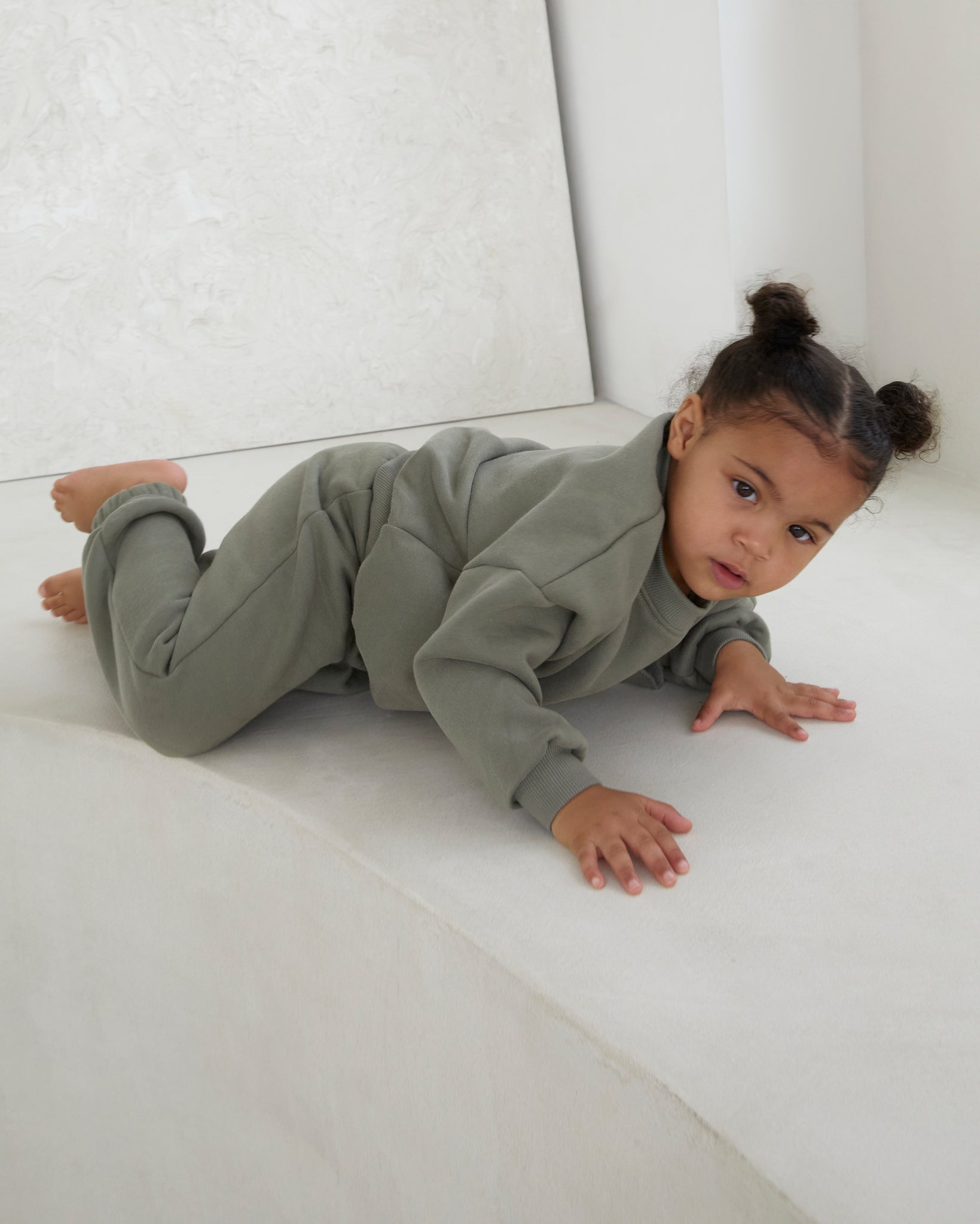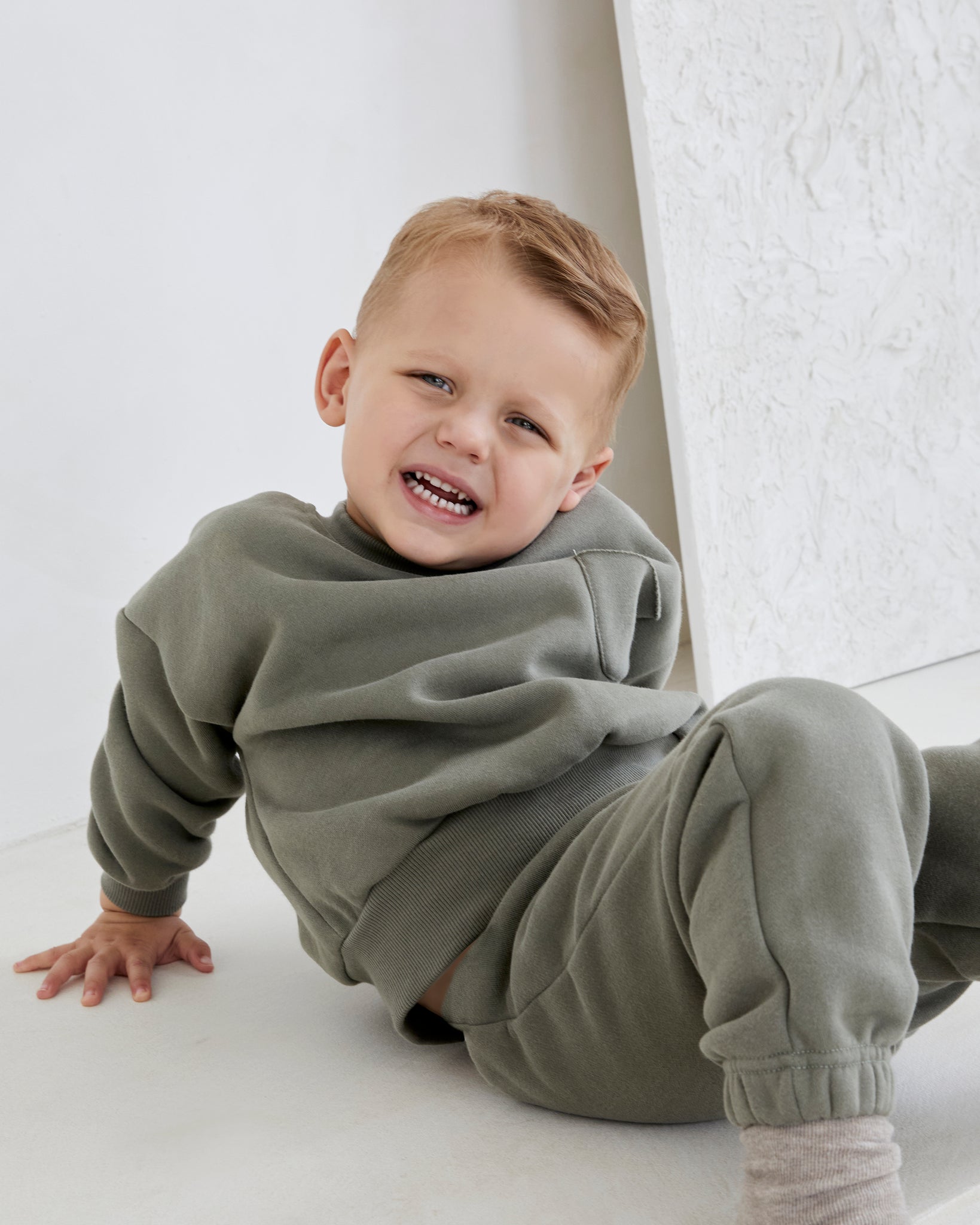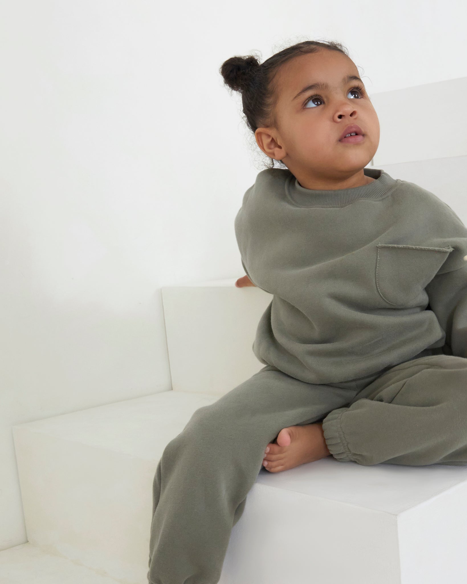 Our Super soft sets consist of A stylish boxy sweater with raw hem pocket and ribbed trim whilst our matching joggers are designed with an elasticated waist and cuffs for the perfect fit. We love how our sets can be worn together or as separates. Lined with a soft fleecy lining this two-piece is perfect for any little minimalist.